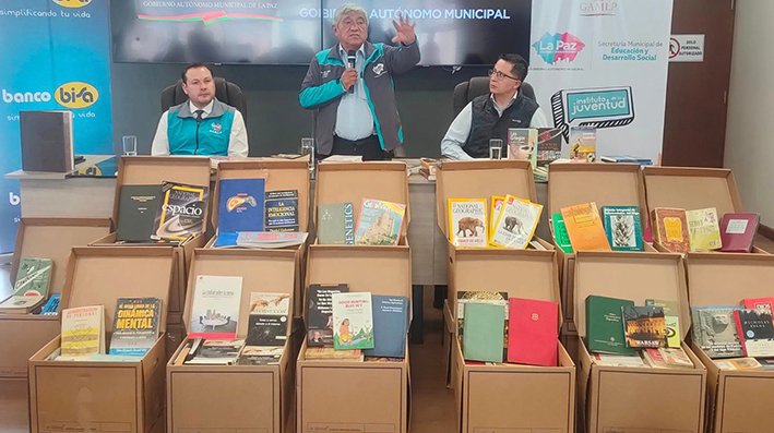 La Paz, 19 de septiembre. Banco BISA entregó al Instituto de la Juventud del Gobierno Autónomo Municipal de La Paz 1.284 libros donados por sus colaboradores. Esta iniciativa es parte de la colaboración continua de Banco BISA a la comunidad y promoción de la cultura.
