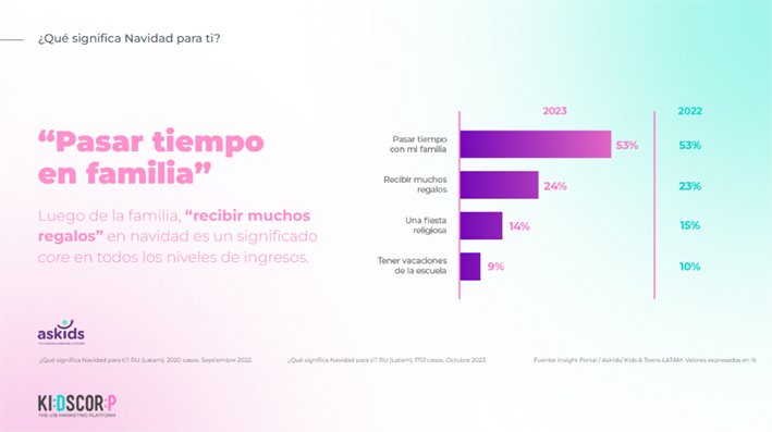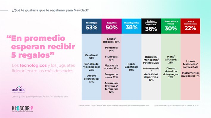 Kids Corp, la compañía martech especializada en el segmento U18 y familias, presentó un reporte sobre las tendencias de la próxima Navidad en el segmento U18 en la región. A través de Askids, su tecnología de data, insights y research, se analizaron las respuestas de niños, niñas y adolescentes entre 3 y 18 años en Argentina, Brasil, Chile, Colombia, México y Perú.