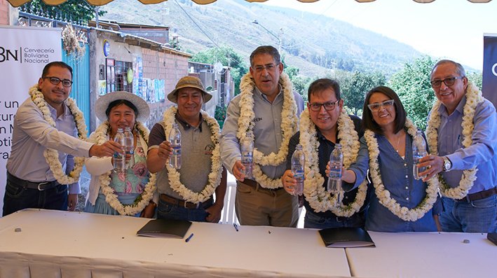 Abril 2023. Agua SOMOS, marca de la Cervecería Boliviana Nacional, realizó una entrega en favor de la Organización Territorial de Base Taquiña Norte en Cochabamba, se trata de un tanque de agua con una capacidad de almacenamiento de 350 mil litros, que fue construido con coordinación con el Sindicato Agrario Taquiña. La acción solidaria responde a las necesidades de los pobladores de la zona para garantizar el acceso al agua segura a las 300 familias que viven en el sector.