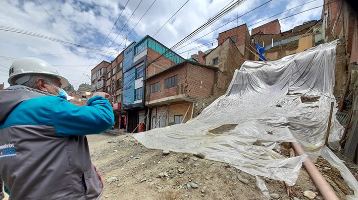 “Una vez que las familias desocupen las casas vamos a ver si se puede salvar poniendo algunas contenciones (muros) o si se tendrá que efectuar una demolición controlada, partiendo desde la parte de arriba para disminuir la carga”, agregó Arias al destacar que se pide al Concejo Municipal de La Paz la autorización del uso de recursos públicos para los trabajos preventivos en el sector intervenido.