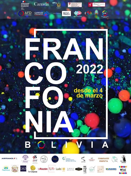 Marzo 2022. En marzo, se celebra el Mes de la Francofonía a nivel nacional impulsado por la Embajada de Francia en Bolivia, la Red de Alianzas Francesas de Bolivia y Embajadas de países observadores de la OIF – Organización Internacional de la Francofonía.