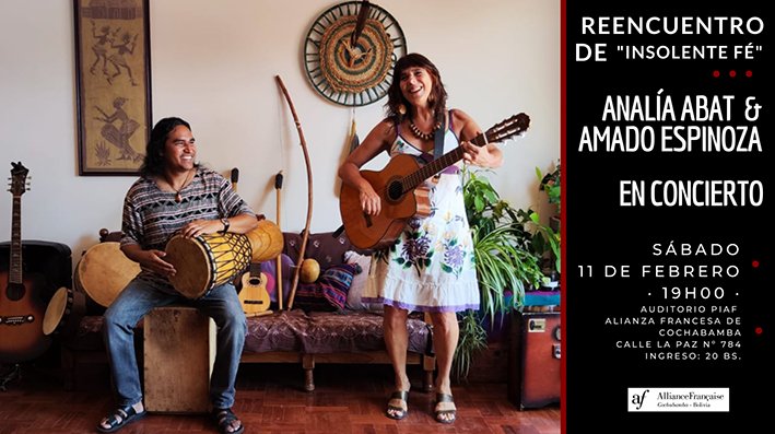 Analia Abat y Amado Espinoza se presentarán en concierto el sábado 11 de febrero en la Alianza Francesa de Cochabamba.