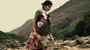 Una joven madre embera y su pequeña hija de dos años viajan desde la ciudad en la que viven a pasar unos días en su pueblo natal. La niña lleva con ella un trozo de su propio cordón umbilical. Para la pequeña el contacto con la naturaleza es nuevo y fascinante: el barro, las hormigas, el sonido de los árboles, el agua del río… Como la lengua embera, todo es un idioma por descubrir para esta pequeña que pareciera querer absorber y atesorar cada instante con su expresiva mirada. La cámara la sigue permanentemente para observarla y para darnos, de paso, la posibilidad de acompañarla y sentir con ella un recorrido lleno de verdad y vida.
