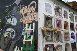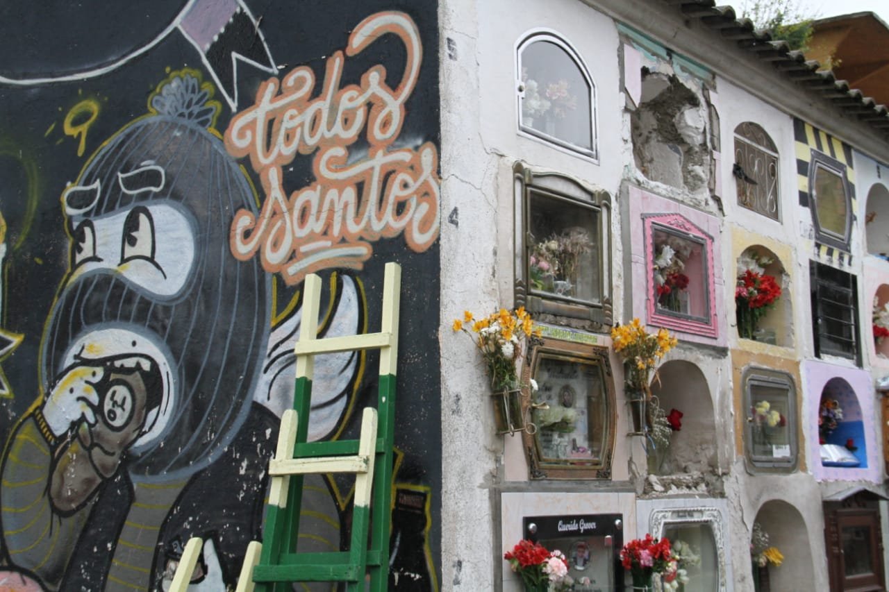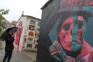 “Con estos murales se va a tener ya 70 murales dentro del cementerio, lo cual convierte al espacio en una de las más grandes galerías al aire libre”, agrega Conitzer. Acotó que Ñatinta complementa a otras actividades que se realizan en estas fechas en el camposanto.