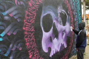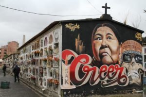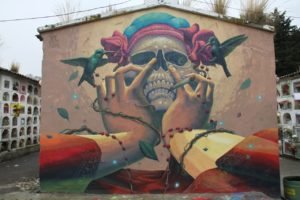 Un total de 30 murales es pintado en fachadas laterales y un techo de los pabellones del Cementerio General por 37 artistas, en el marco del tercer festival de muralismo ‘Ñatinta 2018’. La actividad cultural es una iniciativa del colectivo Perrosueltos, en coordinación con la administración del camposanto.