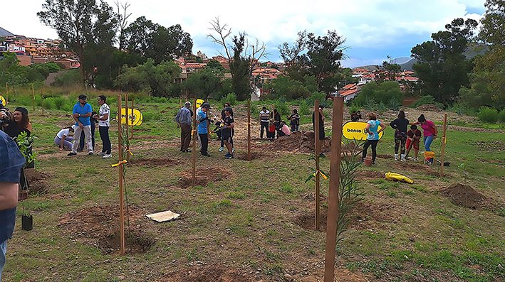 Los árboles plantados fueron financiados por los propios colaboradores de Banco Bisa, quienes realizaron aportes para desarrollar esta tarea, además de su mantenimiento durante los primeros 12 meses.