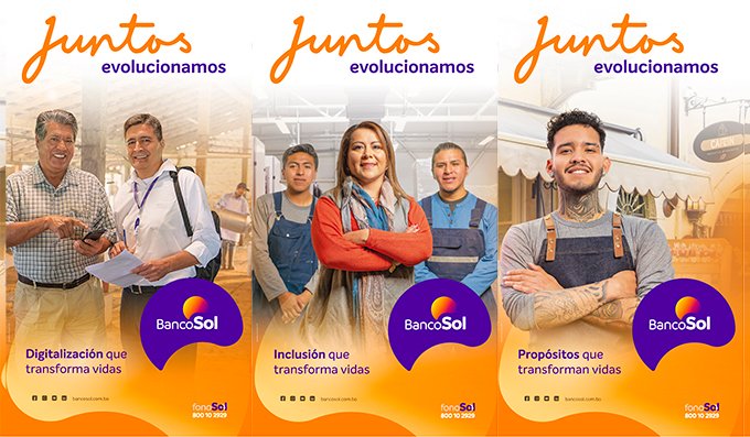 Detrás de esta renovación de la marca de BancoSol está conceptualizado lo moderno y lo digital, centrados en el bienestar de los clientes y en atender sus necesidades de forma simple y eficiente, y a la vez cálida y humana. Se trata de una evolución que responde a su filosofía esencial de ser aliados de sus clientes y crecer “JUNTOS”.
