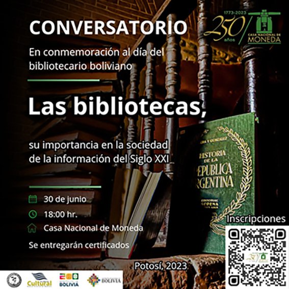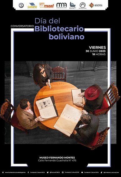En la ciudad de La Paz, en instalaciones del Museo Fernando Montes este viernes, a partir de las 18.00 horas, se llevará a cabo un conversatorio se realizará un repaso histórico sobre el origen de las bibliotecas, donde se abordarán los procesos técnicos que se realizan en estos centros; las adquisiciones, clasificación, catalogación, registros, preparación física, almacenamiento, entre otras tareas que asumen los custodios.
