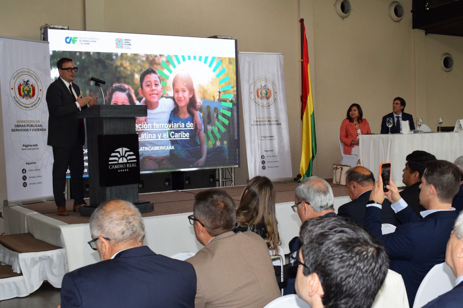 Santa Cruz de la Sierra, 8 de abril de 2026. CAF –banco de desarrollo de América Latina y el Caribe– participó en el evento “Bolivia, corazón de integración latinoamericana: política nacional de ferrocarriles”, organizado por el Ministerio de Obras Públicas, Servicios y Vivienda (MOPSV), donde autoridades nacionales, organismos internacionales, empresarios y especialistas coincidieron en que el país se encuentra ante una oportunidad histórica para transformar su sistema ferroviario en el eje de su desarrollo económico, integración territorial y proyección regional.