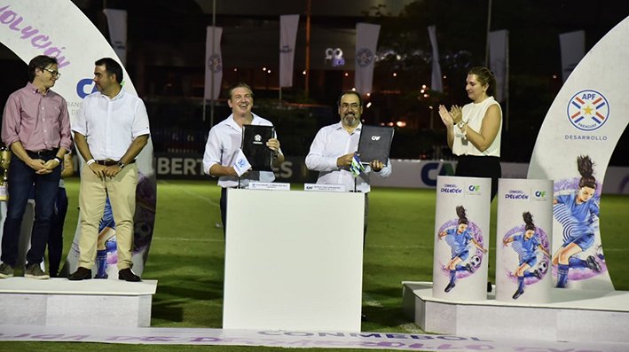 La firma del Memorando por parte del presidente ejecutivo de CAF, Sergio Díaz-Granados, y el presidente de la CONMEBOL, Alejandro Domínguez, se realizó en la sede del ente rector del fútbol sudamericano en Luque, Paraguay con la presencia del ministro de Hacienda, Óscar Llamosas, al término de las finales Sub 14 y Sub 16 de la Liga Femenina de Desarrollo de la Asociación Paraguaya de Fútbol en el que se coronaron como campeonas el Club Olimpia en la categoría Sub-14 y el Club Sport Kuetuvy en la categoría Sub-16.