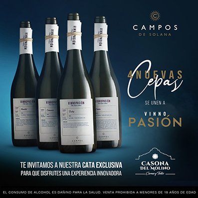 La segunda versión de Vinnopasión ya está disponible para los degustadores más entusiastas y amantes de etiquetas exclusivas. Campos de Solana lanza nuevamente la línea de vinos hechos a mano conformado por cuatro botellas: un vino blanco de la variedad Riesling fermentado en barricas de roble y tres tintos, un Carmenere con crianza de 12 meses en barricas, un Caladoc elaborado con la técnica de maceración carbónica y con crianza en barricas por 12 meses, y un Monastrell también con fermentación y posterior crianza en barricas de 12 meses.