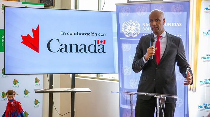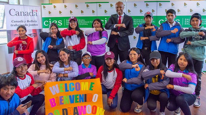 LA PAZ, 18 de enero de 2024. Ahmed Hussen, ministro de Desarrollo Internacional del Canadá, llegó a Bolivia para anunciar y lanzar dos nuevos proyectos en derechos sexuales y reproductivos, que son impulsados en Bolivia por su país, con un financiamiento de 19 millones de dólares canadienses (equivalentes a más de 14 millones de USD, y que beneficiarán directamente a 151.000 adolescentes y jóvenes entre los 10 y 29 años. Los proyectos serán ejecutados por Naciones Unidas y por Plan International.
