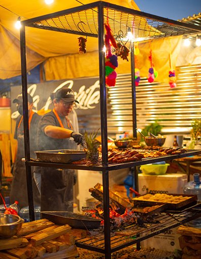 Anticuchos, hamburguesas, pizzas, tacos, carnes a la parrilla, ceviches, chancho a la cruz, chorizos chuquisaqueños… entre muchas otras propuestas formaron parte del menú al que se sumó una cartelera de artistas que acompañaron la experiencia con música en vivo.
