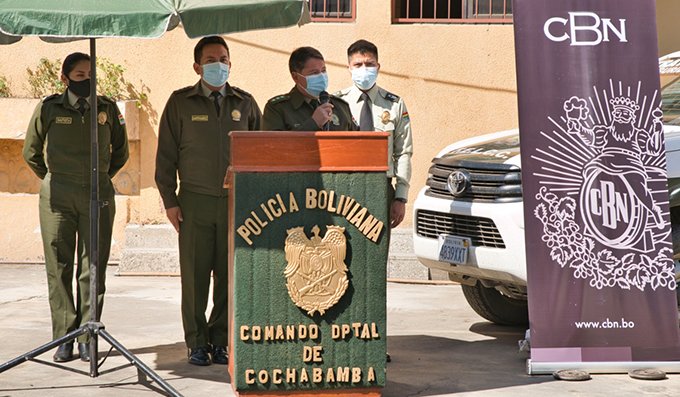 El Comandante Departamental de la Policía de Cochabamba, Cnl. Rubén Darío Lobatón Ortiz, fue el encargado de recibir la donación que será distribuida entre los miembros de la institución del orden que tienen contacto directo con el público.