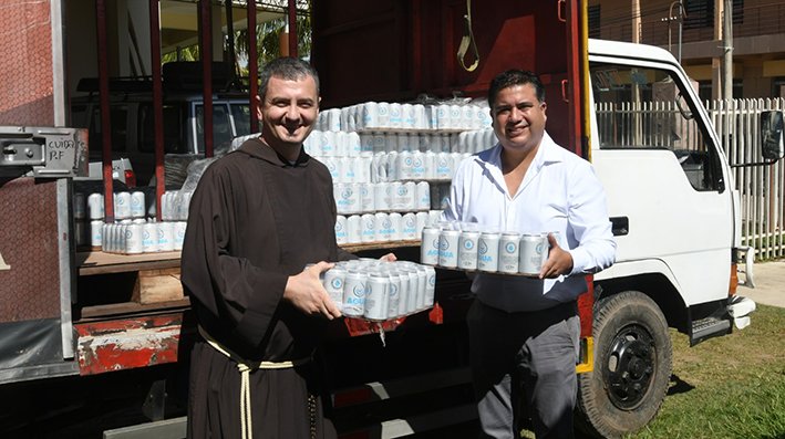 Enero 2023. Cervecería Boliviana Nacional, en el marco de su Programa de Responsabilidad Social, hizo la donación de más 2 mil envases de agua para apoyar a 350 niños de las obras sociales de la Parroquia San Isidro Labrador del municipio de Minero.