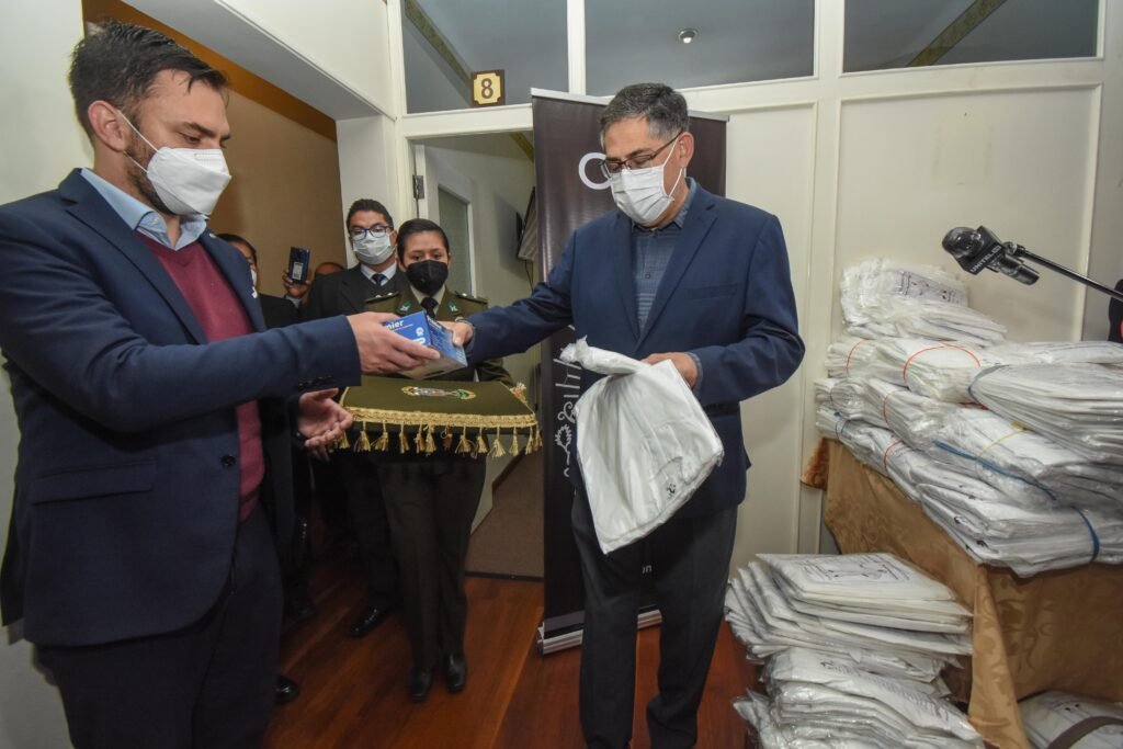 Durante un acto que contó con la participación de autoridades de la Policía Boliviana y el Gobierno Central, CBN hizo entrega de 350 trajes de bioseguridad hechos completamente en Bolivia para la Policía Boliviana. A su vez, se entregaron 1.000 barbijos KN95 y 2.000 guantes de nitrilo, dos instrumentos fundamentales para la lucha contra la COVID-19.