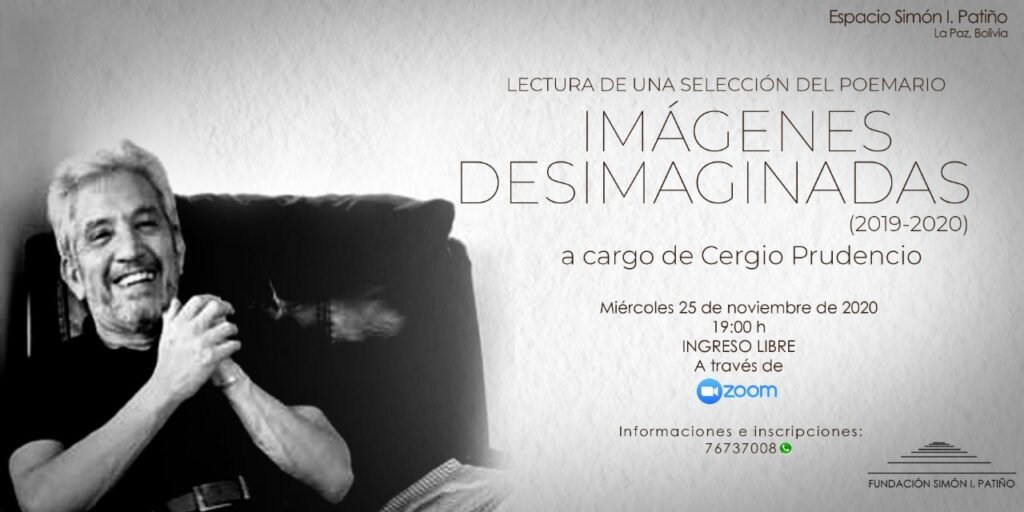 El miércoles 25 de noviembre, a las 19:00, se realizará la lectura de una selección del poemario «Imágenes Desimaginadas» (2019-2020), a cargo de Cergio Prudencio y organizado por el Espacio Simón I. Patiño.