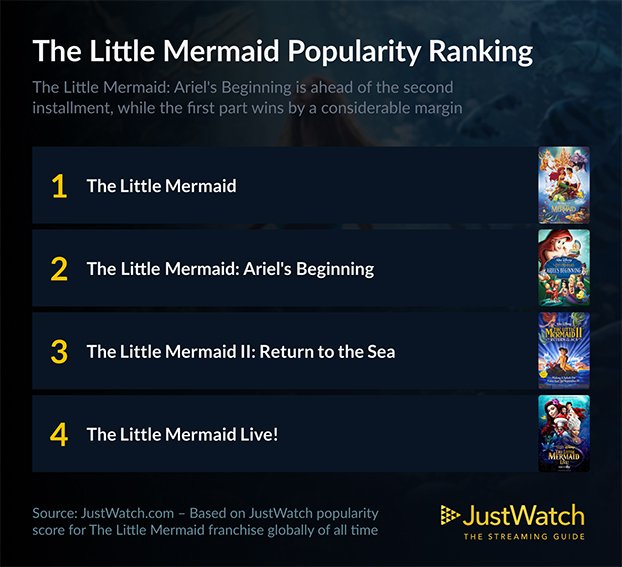 Con el estreno de «La Sirenita» esta semana, analizamos cómo se clasificaron las entregas anteriores en un gráfico de datos elaborado por la plataforma JustWatch.