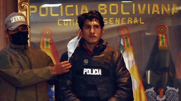 El ministro de Gobierno, Eduardo Del Castillo, presentó este domingo a José Luis Casilla Machaca, el cómplice de Richard Choque el “psicópata serial”, ambos fueron aprehendidos el 2013 por el asesinato de una adolescente, estaban sentenciados a 30 años y fueron liberados el 2015. El cómplice estaba oculto en un sótano.