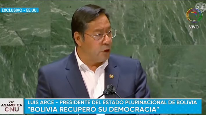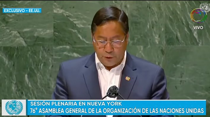 RC Noticias de Bolivia, 24 de septiembre de 2021. «La crisis de la pandemia hace un llamado a la solidaridad y cooperación internacional entre pueblos hermanos en favor de la vida», exclamó ayer Luis Arce, mandatario del Estado Plurinacional de Bolivia, en la sesión plenaria número 76 de las Naciones Unidas en New York, en la que no solo habló de la crisis sanitaria, sino también del cambio climático y los hechos sucedidos en noviembre de 2019.