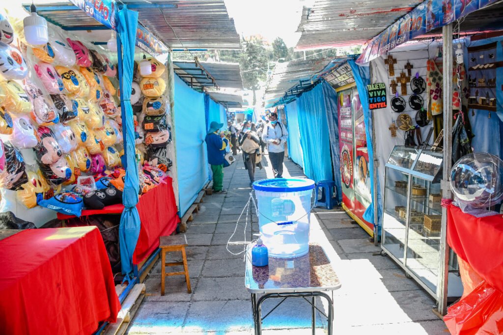 Durante un breve recorrido, realizado por la AMN, se evidenció las medidas de bioseguridad que instalaron en los puestos de venta y los comerciantes usaban barbijos y guantes. Son seis las acciones preventivas que la Alcaldía dispuso como obligatoriedad dentro de la Feria de la Alasita.