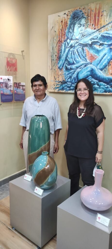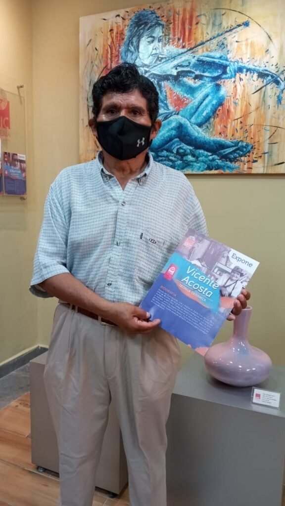 En el MIC Santa Cruz se puede apreciar el trabajo de Vicente Acosta Macías, ceramista autodidacta de 62 años. Aunque él se empeña por presentarse como artesano, el concepto estético de sus jarrones lo ponen más cerca de las bellas artes. “El arte para mí da vida, es capaz de iluminar todo un espacio”, explica Acosta quien agradece la posibilidad de exhibir su trabajo al lado de la obra de otros artistas.