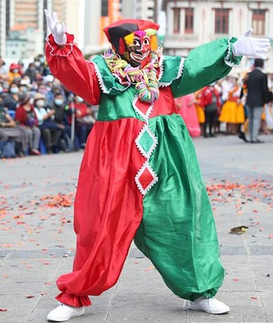 Explicó que el Pepino representa “la picardía, la alegría y el desenfreno característicos del carnaval”, mientras que el Ch’uta y la Cholita “introducen costumbres aymaras en la fiesta”, como el agradecimiento a la Pachamama o Madre Tierra por sus frutos, una tradición arraigada en el occidente del país.