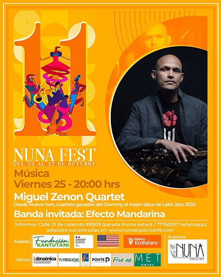 Miguel Zenón Quartet, ganador del Grammy 2024 al Mejor Álbum de Jazz Latino, llega desde Nueva York, Estados Unidos, a Bolivia. Este viernes, se presentará en el teatro Nuna, como parte del NunaFest 2024.