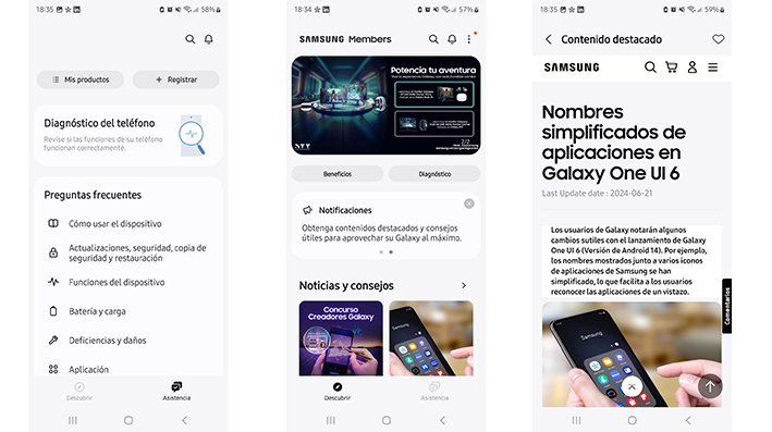 Además, la aplicación cuenta con una sección de Preguntas Frecuentes que ofrece respuestas rápidas y detalladas sobre temas como problemas con la batería o gestión de aplicaciones. Para problemas más complejos, la app facilita la comunicación directa con expertos de Samsung, quienes están disponibles para guiar a los usuarios en la resolución de problemas técnicos.