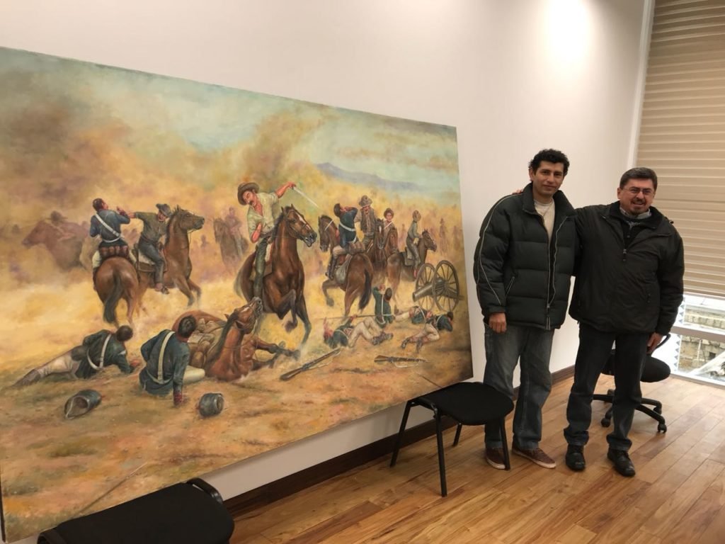 El cuadro titulado «Moto Méndez» fue instalado esta semana en la Casa Grande del Pueblo. El autor de la obra, Jhony Ponce de León, agradeció la oportunidad de llevar su arte y la historia de Tarija al edificio.