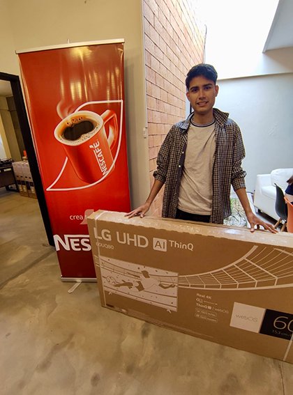 Nescafé, la marca líder del mercado boliviano, culminó su iniciativa “Crea tu mundo con Nescafé”, a través de la cual todos los clientes tuvieron la oportunidad de ganar 100 celulares Honor X8b Aquamarino de 256 GB, 60 televisores LG de 60 pulgadas 4K UHD Smart TV o cualquiera de los seis premios de 35.000 Bs. Los participantes escanearon el QR, presentaron el lote y hora de empaque y automáticamente participaron del sorteo.