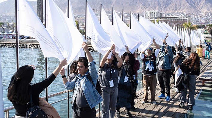 Por su parte, el Gobernador de la Región de Antofagasta, Ricardo Díaz Cortés, destacó la importancia de resignificar espacios patrimoniales como el muelle histórico y abrirlo a exposiciones colectivas. “Antofagasta se caracteriza por tener proyectos culturales que son únicos en el país como la Bienal de Arte Contemporáneo y su museo sin museo. Este año como tema está la violencia del golpe, que nos habla también de una violencia política que lleva a la aniquilación del otro, pero que nos invita a mirar nuestro futuro reconociendo como ciudadanos lo que nos pasó, con una mirada que vaya más allá de la contingencia y de la ideología. Con una mirada desde el arte para resignificar nuestra historia”.