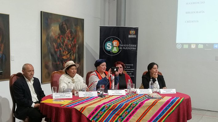 Estuvieron presentes la ministra de la Presidencia, María Nela Prada, quien estuvo en testera; también la ministra de Trabajo, Empleo y Previsión Social, Verónica Navia; la consejera de la FCBCB, Susana Bejarano; el viceministro de Autonomías, Álvaro Ruiz; Sara Poma, del Gobierno Autónomo Indígena Originario Campesino de Salinas y el director del MNA, Iván Castellón, entre otros.