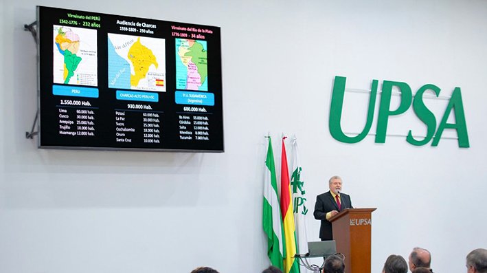 En la conferencia magistral ‘Bicentenario de la Independencia Cruceña’ que brindó el Decano de la Facultad de Arquitectura, Diseño y Urbanismo de la Universidad Privada de Santa Cruz de la Sierra – UPSA, Víctor Hugo Limpias, hizo un recorrido de los hechos históricos que llevaron a la declaración de la independencia de esta región el 14 de febrero de 1825, hitos que marcaron un antes y un después en la historia de la región y el país.