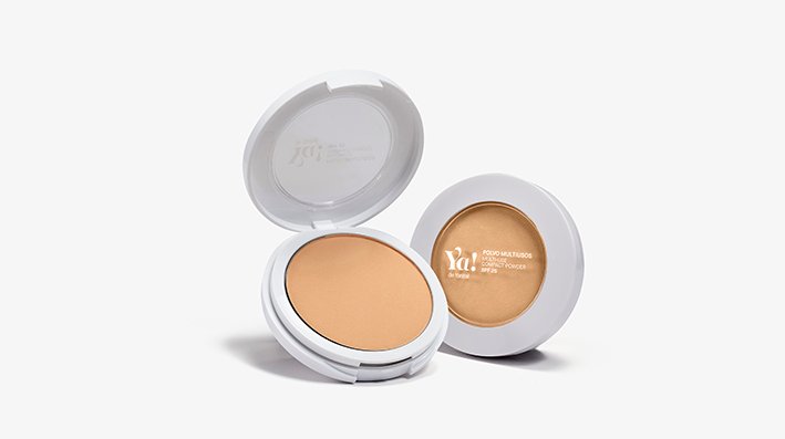 - Polvo Multiusos Ya! Simple, fácil y práctico, un polvo 2 en 1: cubre y unifica como una base ligera; controla el brillo, matifica y retoca como un polvo. Ideal para lucir una piel uniforme y mate, con protección solar incluida ya que cuenta con SPF 25, protección UVA/UVB y es vegano. Es un producto on the go, fácil de llevar, así que siempre podrás retocar tu piel cuando lo necesites.