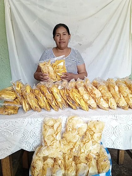 “Empezamos con poco, haciendo todo a mano, fritando en sartén y rallando las papas una por una. Hoy, gracias a las máquinas que hemos podido comprar con los créditos de Banco Ecofuturo, nuestra producción ha crecido, ya no sufro como sufría haciendo todo a mano», cuenta Aquilina con orgullo.