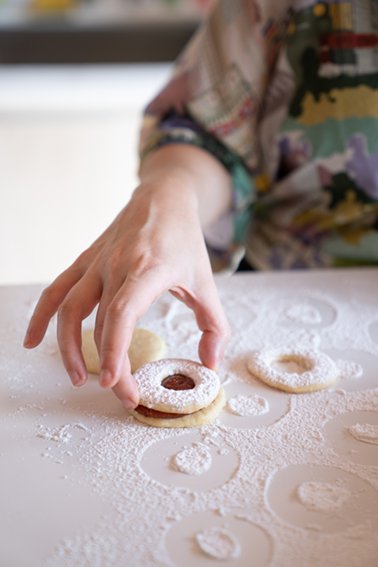 Batimos la manteca con el azúcar y la ralladura con batidor de mano hasta que esté cremosa. Agregamos los huevos y mezclamos. Por último, incorporamos la harina y la sal y formamos la masa sin amasar mucho. La dividimos en dos partes y la dejamos reposar 1 hora en la heladera envuelta en papel film.