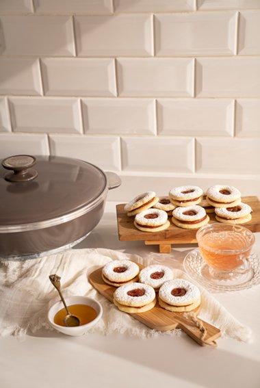 Pisamos el dulce de membrillo con un tenedor y rellenamos las galletas. Cerramos y espolvoreamos con azúcar impalpable.
