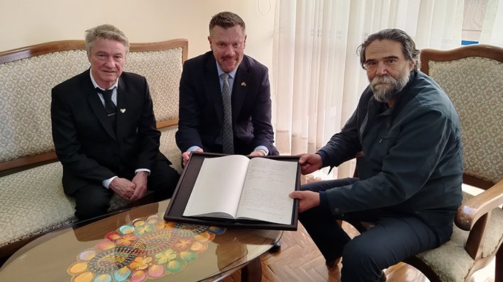 Sucre, 5 de agosto de 2025.— El Archivo y Biblioteca Nacionales de Bolivia (ABNB), institución dependiente de la Fundación Cultural del Banco Central de Bolivia (FC-BCB), recibió la visita del Embajador del Reino Unido en Bolivia, Richard Porter, acompañado por el Sr. Nigel Nicholson, Cónsul Honorario en Sucre, y su comitiva.