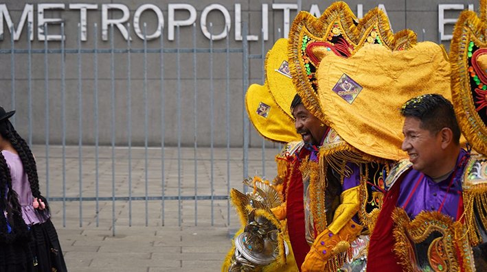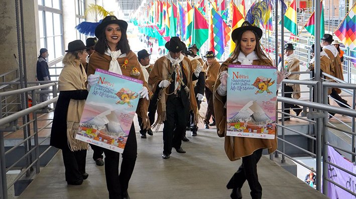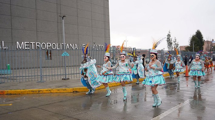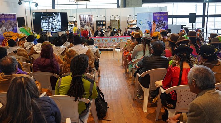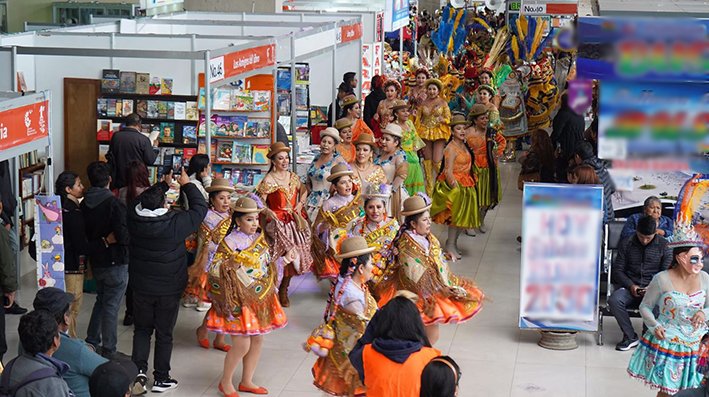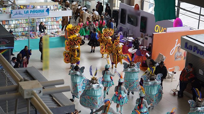 La Terminal Metropolitana El Alto, que en el lado sur acoge los stands de 58 expositores (entre librerías, editoriales e instituciones), fueron el escenario donde esa reconocida fraternidad orureña hizo su paso antes de presentar un fotolibro.