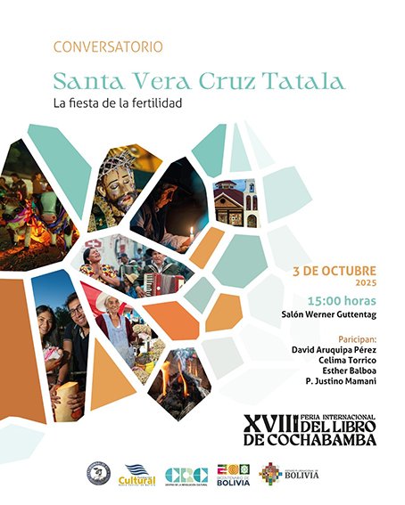 El conversatorio es parte de la preparación de la candidatura de Santa Vera Cruz Tatala a ser inscrita en la lista representativa de Patrimonio Cultural de la Humanidad ante la UNESCO, se contará con participación de Celima Torrico, comunicadora social; Esther Balboa, antropóloga; Justino Mamani, sacerdote de la Parroquia Santa Vera Cruz; y David Aruquipa Pérez, director del CRC. Se llevará a cabo el 3 de octubre a horas 15:00, en el Salón Werner Guttentag del Recinto Ferial Alalay.
