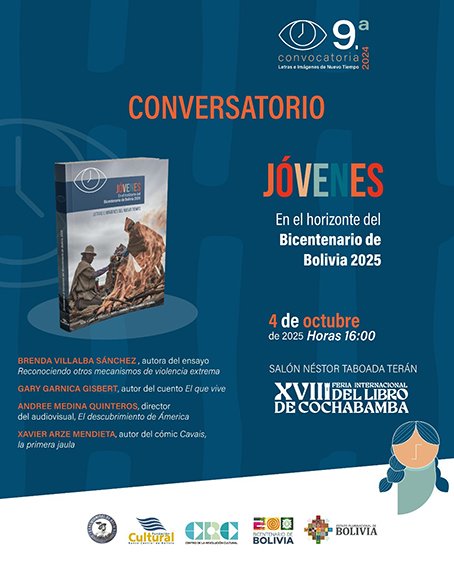 Participarán Gary Garnica Gisbert, autor del cuento El que vive; Brenda Villalba Sánchez, autora del ensayo La violencia vicaria en Bolivia: reconociendo otros mecanismos de violencia extrema; Xavier Arze Mendieta, autor del cómic Cavais, la primera jaula; y Andree Medina Quinteros, director del audiovisual El descubrimiento de América. El conversatorio será moderado por Janela Ingrid Vargas, gestora cultural del CRC.