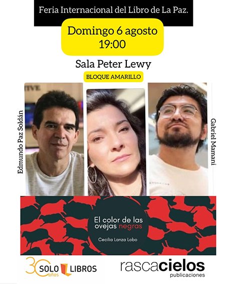El libro «El color de las ovejas negras. Crónica de un parricidio» se presentará en la Feria Internacional del Libro de La Paz. La autora, Cecilia Lanza, estará acompañada por los escritores Edmundo Paz Soldán y Gabriel Mamani Magne.