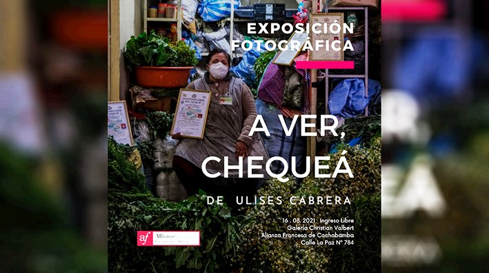 El fotógrafo cochabambino Ulises Cabrera inaugurará la muestra fotográfica «A ver, chequeá» el lunes 16 de agosto, a las 18:30, en la Galería Christian Valbert de la Alianza Francesa de Cochabamba (calle La Paz N° 784 casi Crisóstomo Carrillo). Con esta propuesta, el centro cultural reabre su espacio de exposiciones para el público.
