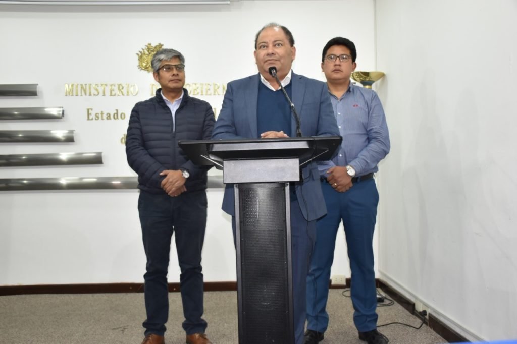 “Hemos recibido en el curso de la tarde un informe de inteligencia de la Policía boliviana que da cuenta de grupos violentos que se van a dirigir esta noche a la plaza Abaroa, a inmediaciones de las instalaciones del Tribunal Supremo Electoral (TSE), con la finalidad de provocar daños al patrimonio público y fundamentalmente enfrentar a la Policía boliviana munidos de explosivos, instrumentos contundentes y fundamentalmente dinamitas”, afirmó la autoridad, en rueda de prensa, desde su despacho.