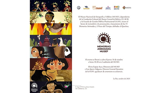 La Paz, Bolivia. El Museo Nacional de Etnografía y Folklore (MUSEF) celebra un nuevo hito en la difusión cultural y lingüística del país con el lanzamiento de las Memorias Animadas dobladas al idioma quechua, gracias al apoyo de la Escuela de Gestión Pública Plurinacional (EGPP), que bajo la dirección de Iván Iporre, viabilizó este importante esfuerzo de preservación, educación y fortalecimiento cultural.