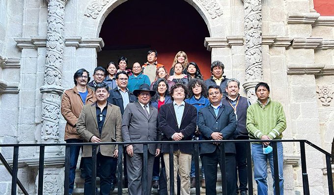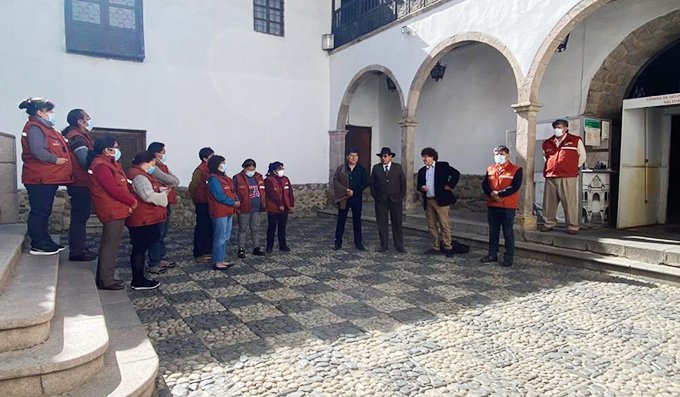 Este miércoles 21 de septiembre, el presidente de la Fundación Cultural del Banco Central de Bolivia Luis Oporto Ordoñez, junto al director General Willy Tancara Apaza y el jefe nacional de Gestión Cultural David Aruquipa Pérez, presentaron al recientemente posesionado consejero de administración, Manuel Monroy Chazarreta, a todo el personal que forma parte del Museo Nacional de Etnografía y Folklore (MUSEF) y el Museo Nacional de Arte (MNA), además de hacer un recorrido por sus instalaciones.