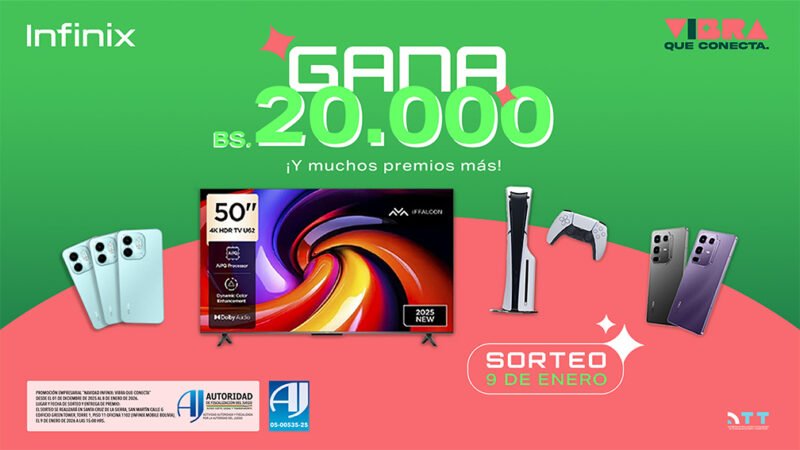 Estas fiestas, INFINIX quiere que tu compra sea mucho más que un smartphone: sea una oportunidad para celebrar, soñar y ganar premios increíbles. Desde el 1 de diciembre hasta el 9 de enero, quienes adquieran un dispositivo de las series HOT 60 (HOT 60i, HOT 60 PRO, HOT 60 PRO+) o NOTE 50 (NOTE 50, NOTE 50 PRO) ingresan como participantes a la promoción navideña “Vibra que Conecta”.