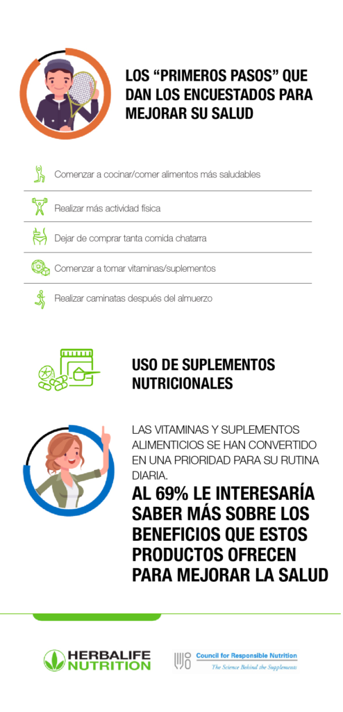 La encuesta indagó aún más en las vitaminas y suplementos alimenticios, y descubrió que estos productos se han convertido en una prioridad para muchos de ellos. Muchos encuestados planean incorporar o mantener las vitaminas y suplementos a su dieta; el 68% manifestó que conoce los beneficios reales que éstos ofrecen para la salud.