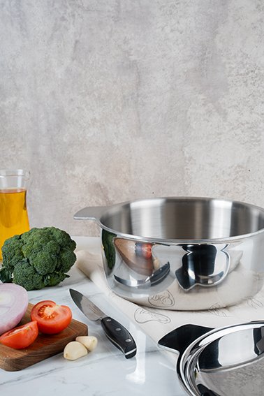 La protagonista de esta nueva Línea Fusión es la Cacerola de 24 cm Inox, diseñada con la exclusiva tecnología Nova Steel: un cuerpo de acero inoxidable con corazón de aluminio, que garantiza una cocción pareja, eficiente y de alto rendimiento. Gracias a su estructura tricapa de alto espesor, distribuye el calor de forma uniforme, elevando la experiencia en la cocina tanto para amateurs como para expertos.